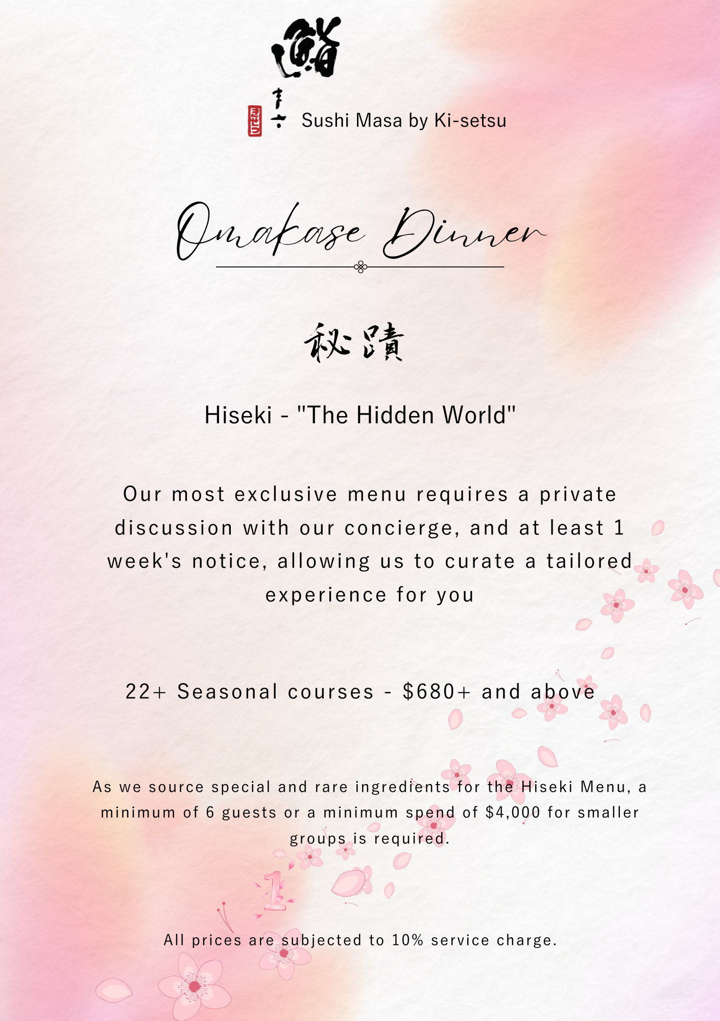 For special requests, private bookings or to indulge in our exclusive Hiseki Menu, please contact our Concierge via Whatsapp.